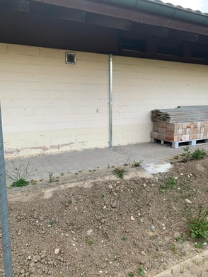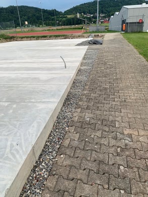 Der kiesige Abschluss bei der Bodenplatte zum Padelplatz.