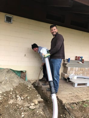 Einlegen des Leerrohrs für die Stromkabel im März.